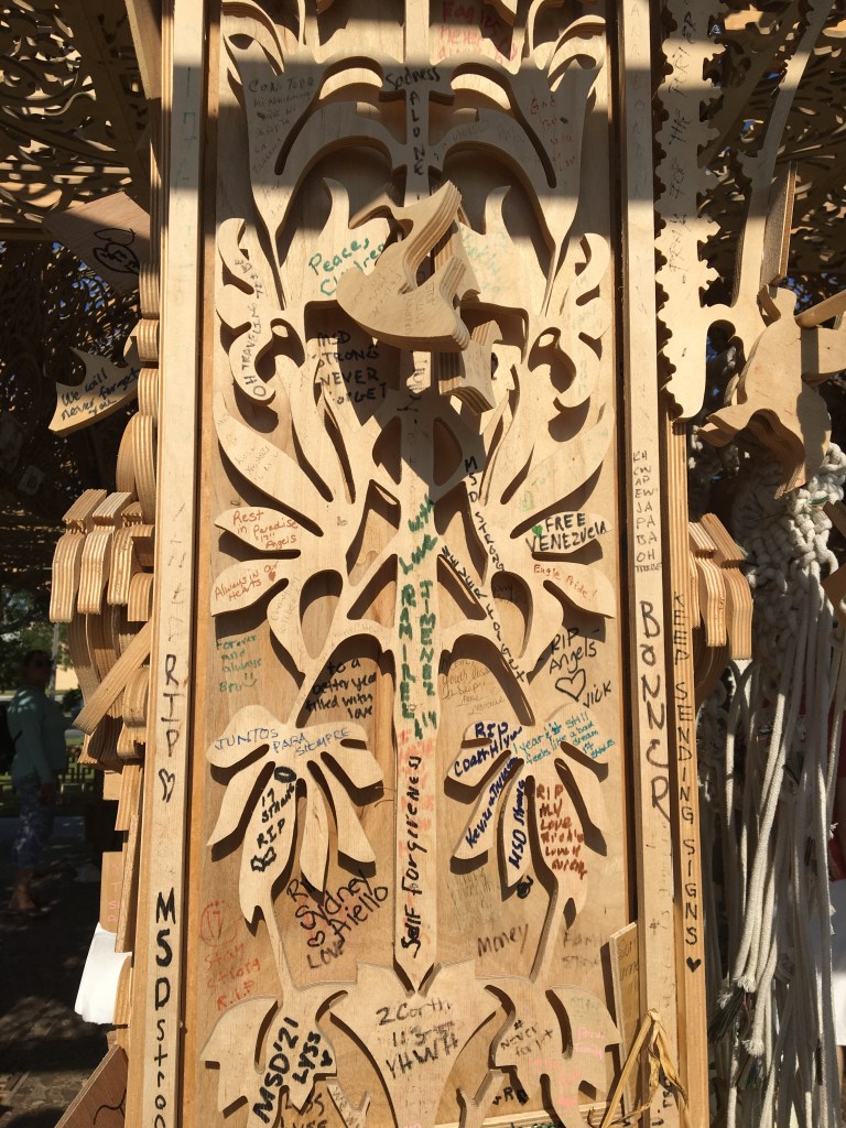 The artist/creator, David Best, said that what he made is no more than a pretty shape. It’s the individual’s job to come and put in their personal thoughts, their faith, their hopes and their anger. When that burns down, the hope is that some of their grief and anguish go up in smoke too.