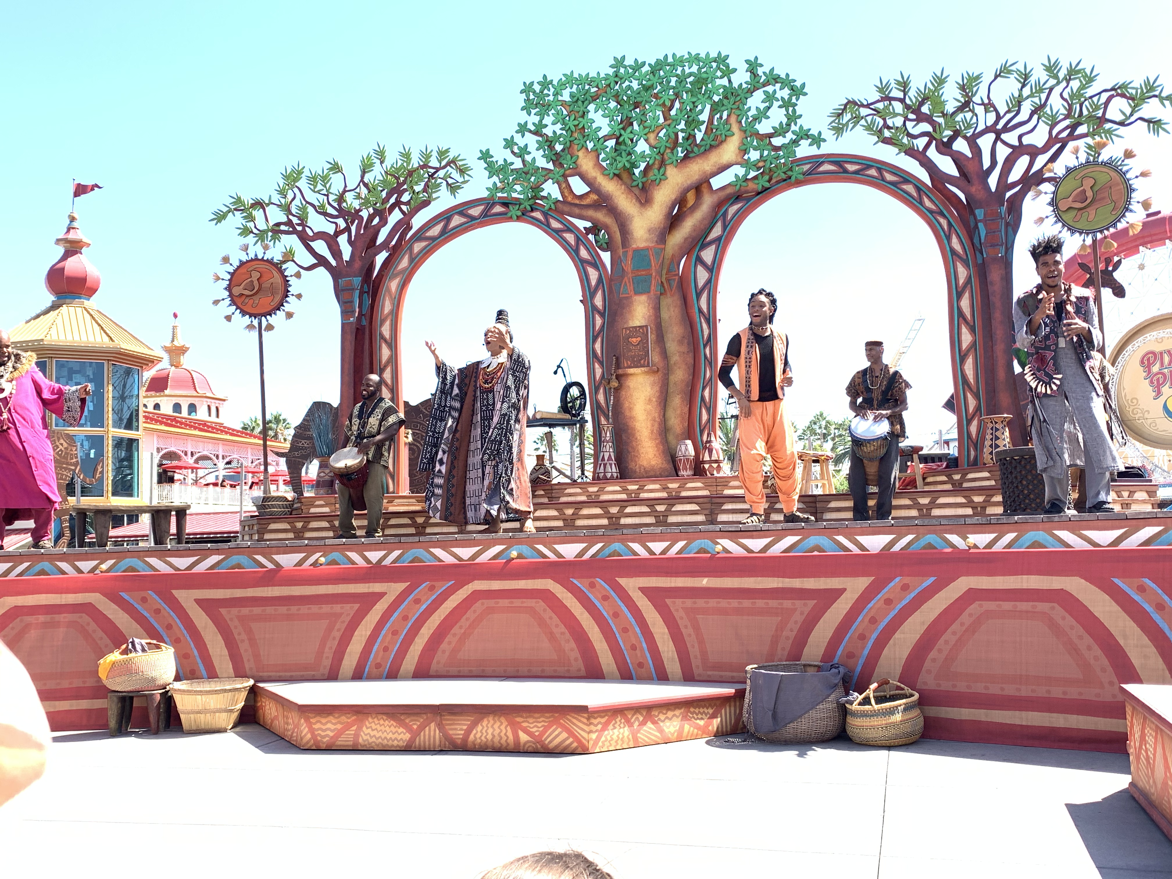 The Jungle Cruise was followed by the Story of the Lion King, an excellent live production. We sat outside on the steps at the beginning but had to move as it was too hot and loud for the girls. Highly recommend the show. The singer/dancers were outstanding.
