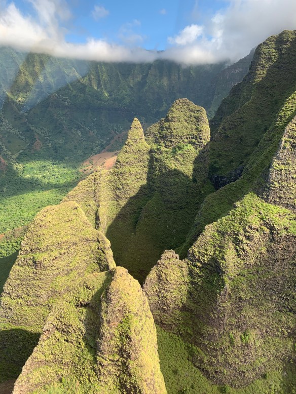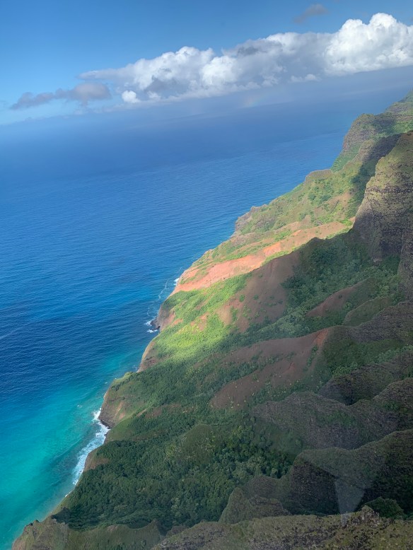 We took a helicopter tour of Kaua’i, recreating some of the scenes from Jurassic Park which was in part filmed on the island. We flew into Waimea Canyon, just like in the movie. It was beautiful and a totally different perspective and sense of scale (enormous!) from the driving day trip we took on Thursday.