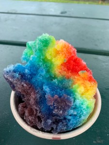 For those not in the know, Shave ice or Hawaiian shave ice is an ice-based dessert made by shaving a block of ice. While the product can resemble a snow cone, snow cones are made with crushed, rather than shaved, ice. On the Big Island of Hawai’i, it is also referred to as ‘ice shave’, though both terms (ice shave and shave ice) are used by locals. (Wikipedia)
