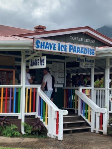 We took a longer stop in “down town” Hanalei for some shave ice and a walkabout the town. Of course it was touristy but fun and very nice people.