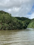 The river is fed by runoff from Mt Wai’ale’ale, one of the wettest spots on earth. (Last week we were at Waimea Canyon on the other side of the mountain and saw the sign noting that the place that receives the most rain in the world. If fact, each year it receives 10 years worth of the rain that falls in Seattle.