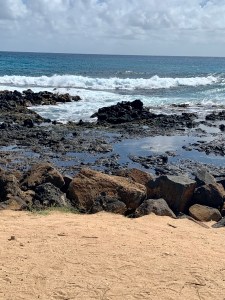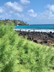 We spent Tuesday morning on an excursion to Fern Grotto on the Wailua River. We then drove down to Poipu for lunch at a beach restaurant called Brennecke’s. It wasn’t bad and was reasonably priced.