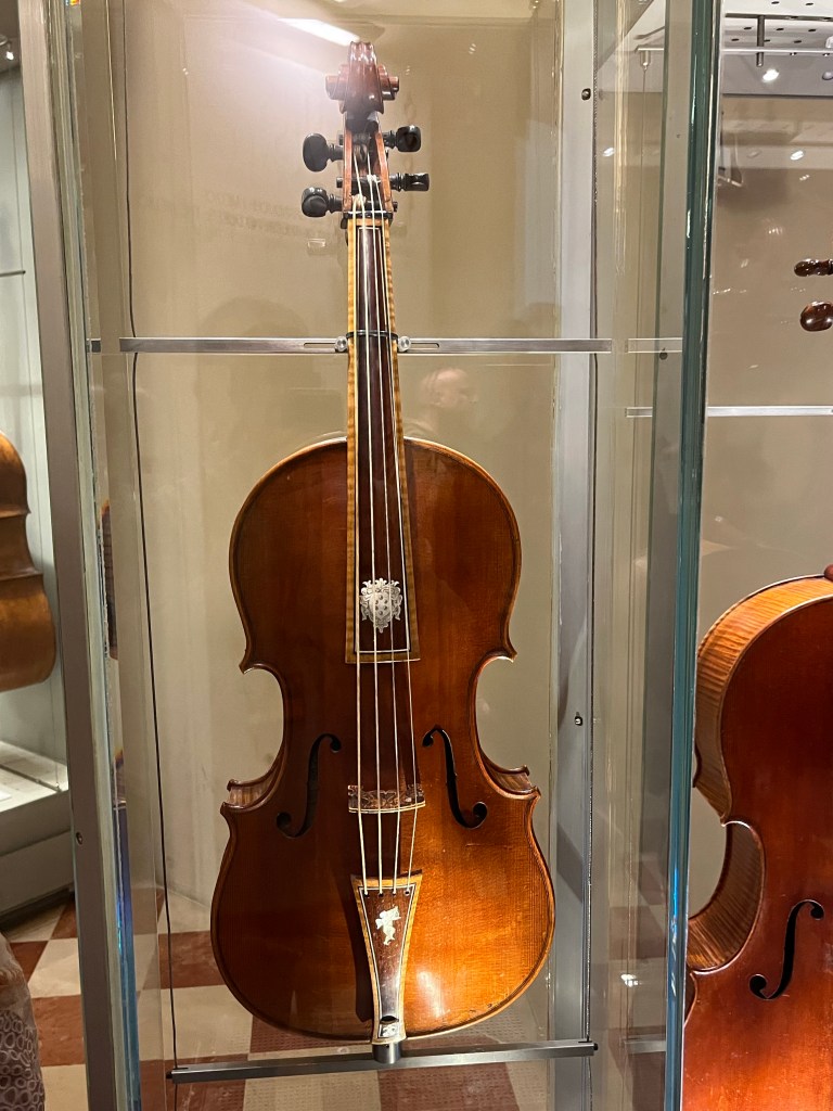 We then went into the music school to view, and learn about, a number of stringed instruments and pianos. ( Florence is the birthplace of the piano.) There were several Stradivarius violins and violas on display. As the story goes, one of them was purchased (by a Medici) as a status piece and was never played.