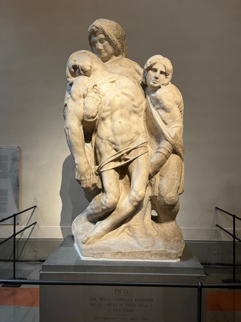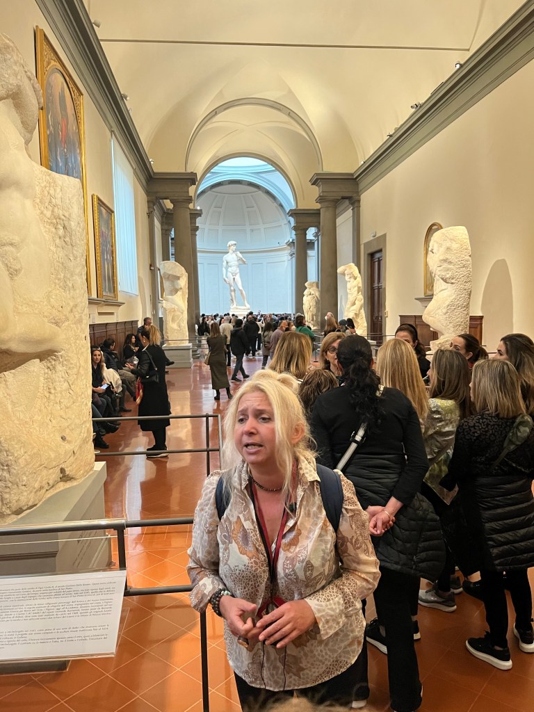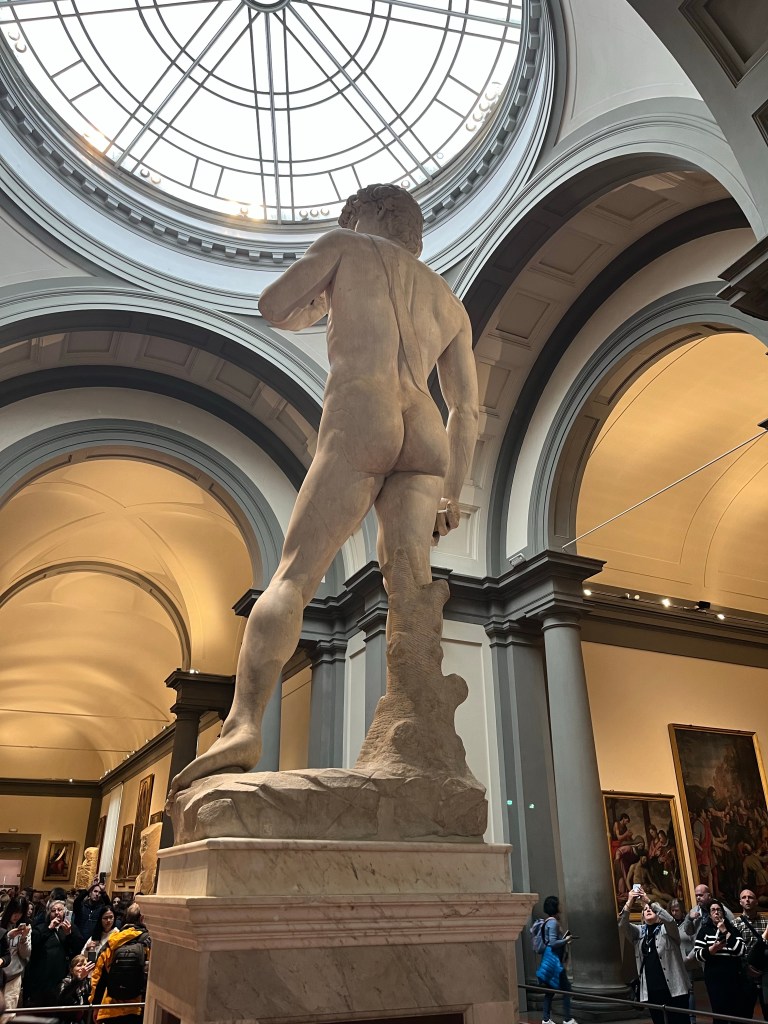 Michelangelos David is every bit as awe inspiring as its reputation. Our tour guide led us through the Accademia Gallery in Florence. We began the tour with a number of unfinished sculptures and several artists methods of creating them.