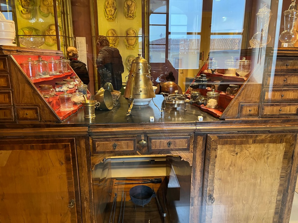We wandered around the museums three floors stopping at everything that looked interesting, like microscopes and telescopes. (I heard somewhere that Galileo didn’t invent the telescope, “just” improved it.) We were amazed at the number of other scientific, drafting and measuring tools that were invented in the 1500 and 1600’s. The ingenuity, precision and beauty of those instruments boggles the mind.