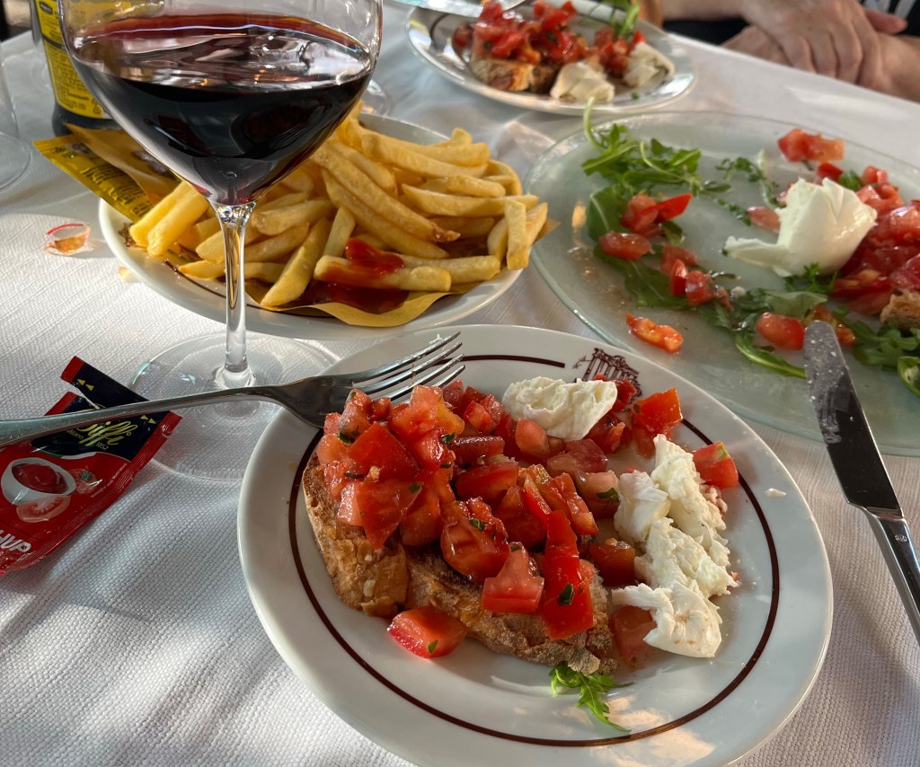 After we left the tour we headed back to our hotel. As we had reservations at a very popular restaurant later we decided to pop in for a snack of bruschetta and french fries. Delish!