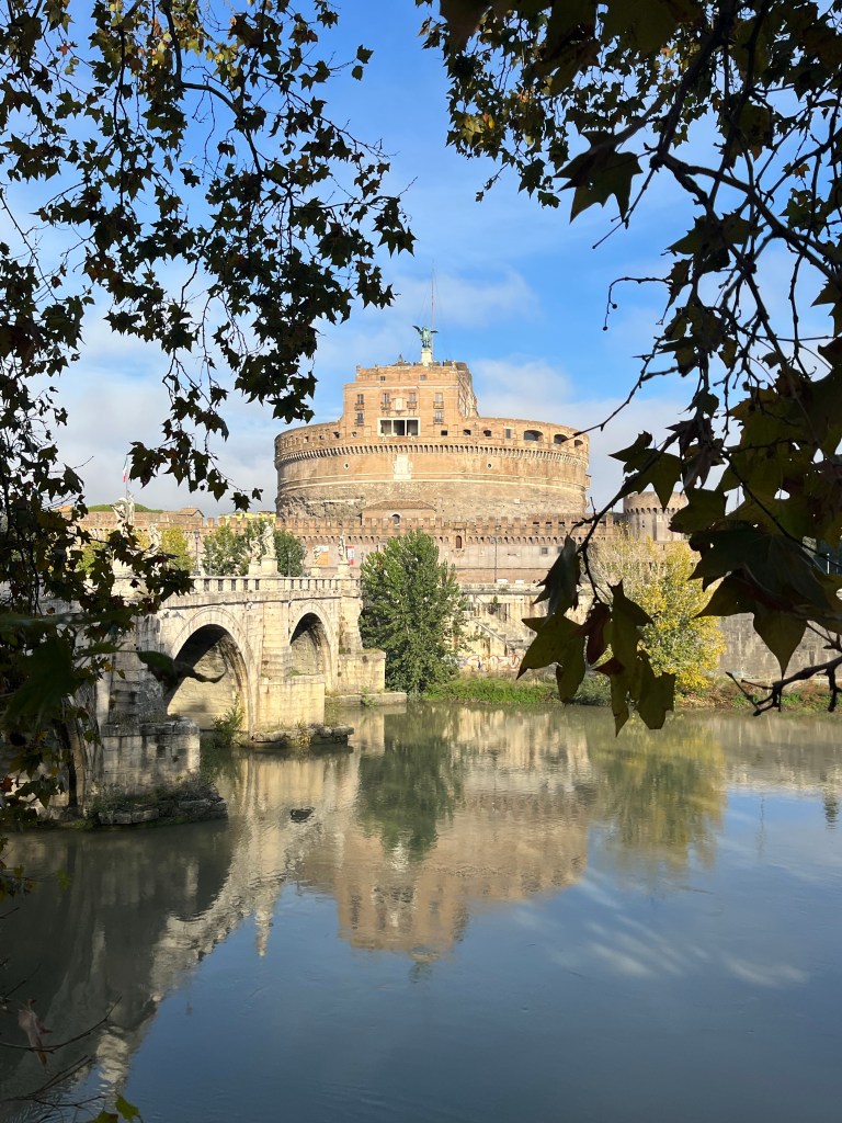 Our first stop was at the Vatican (where we were yesterday.) We didn’t hop off, just used the stop to take some pictures of Castel Sant’ Angelo. It was commissioned by Emperor Hadrian (he built, or started an enormous number of buildings) as a mausoleum for himself and his family. It was later used by popes as a fortress and castle. It is now a museum.