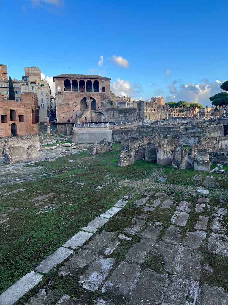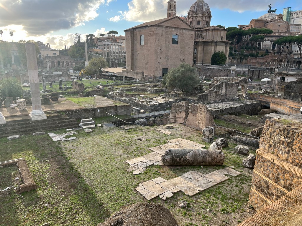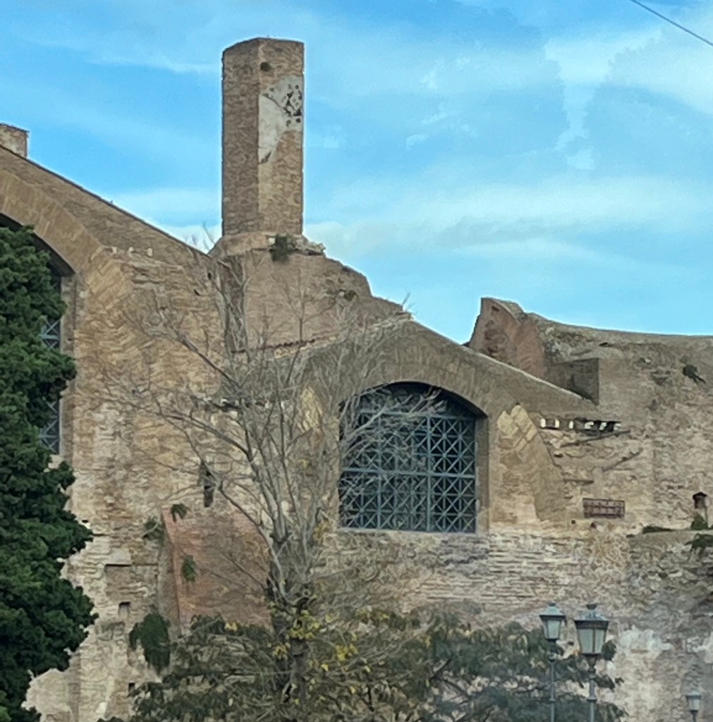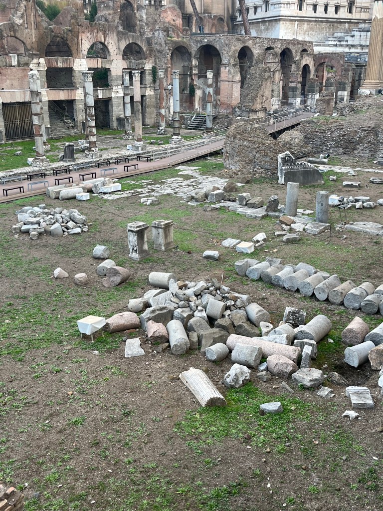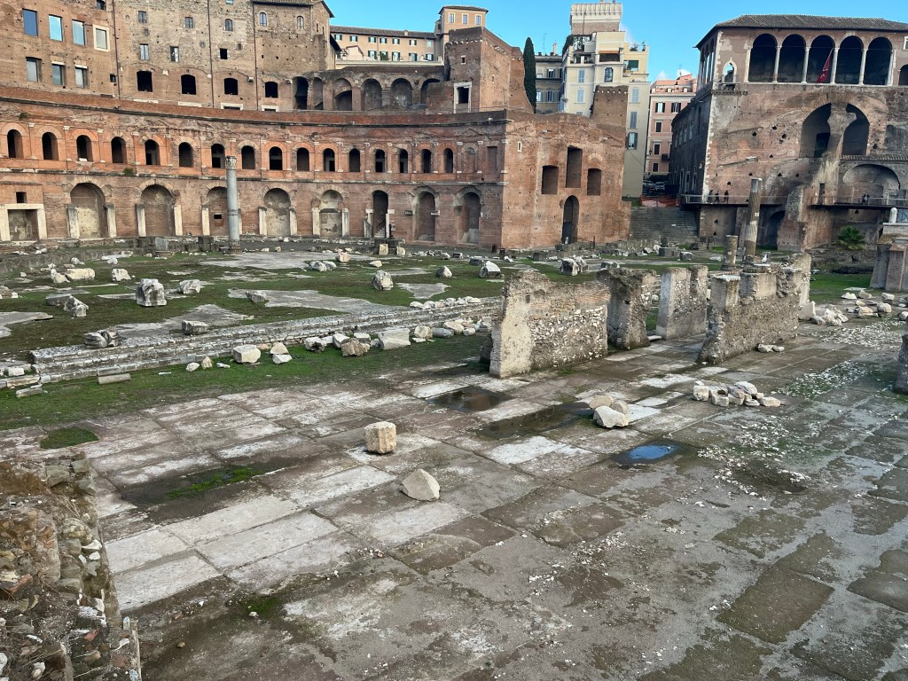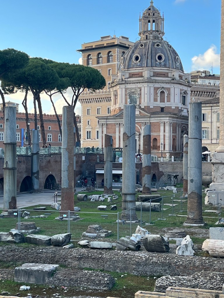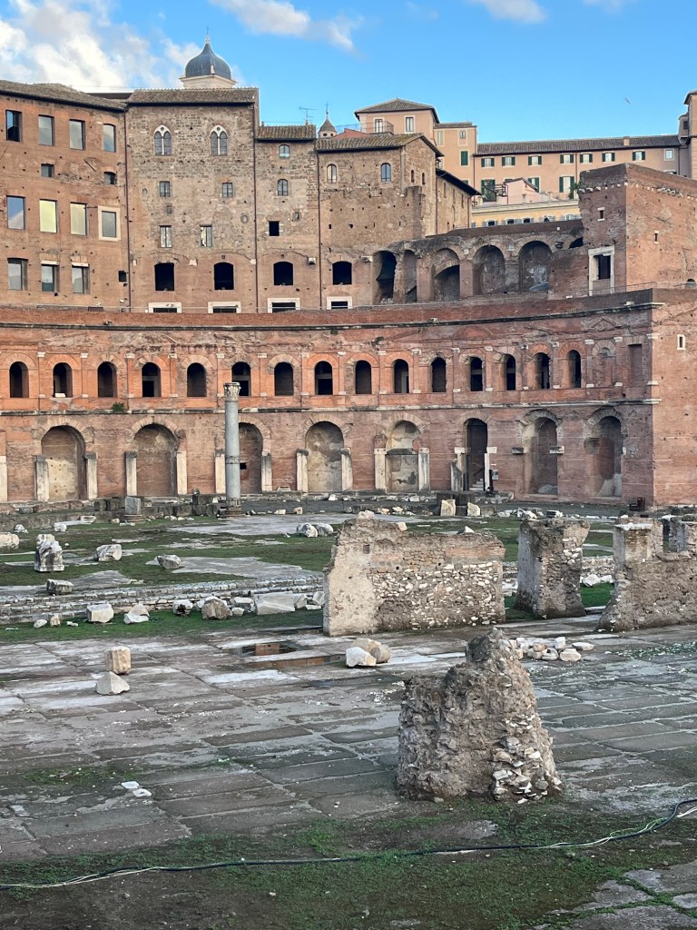 And after our refreshments we continued towards our hotel, stopping to inspect some more excavations. These are from the Forum of Caesar and the Forum of Trajan, 46 BCE – ~112 AD.