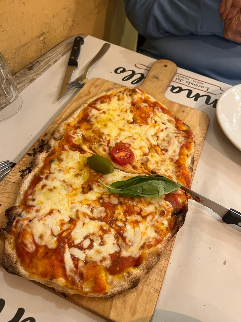 That is, until a pizza was delivered to the next table. We called the manager over. (Her English was much better than our waitress’ who was lovely, but admitted her limited English.) We asked for our second to be changed to the pizza and lo and behold it worked and came out right and we were so glad. When you are on a roll that just keeps on rolling, go with it!