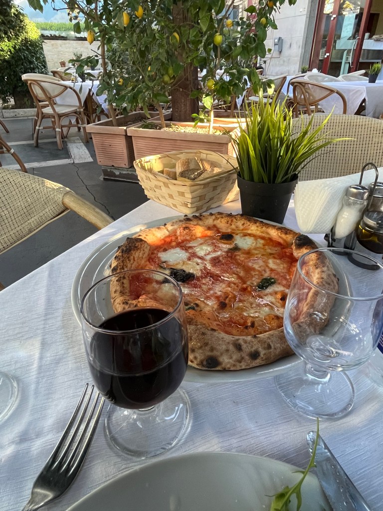 After our tour of Pompeii Alfonso took us to a restaurant for lunch. It was basically a set menu starting with a glass of wine and a wonderful caprese salad. That was followed by a small pizza to share, then a bolognese and rum baba for dessert. I hate to do this to you all but here we go: