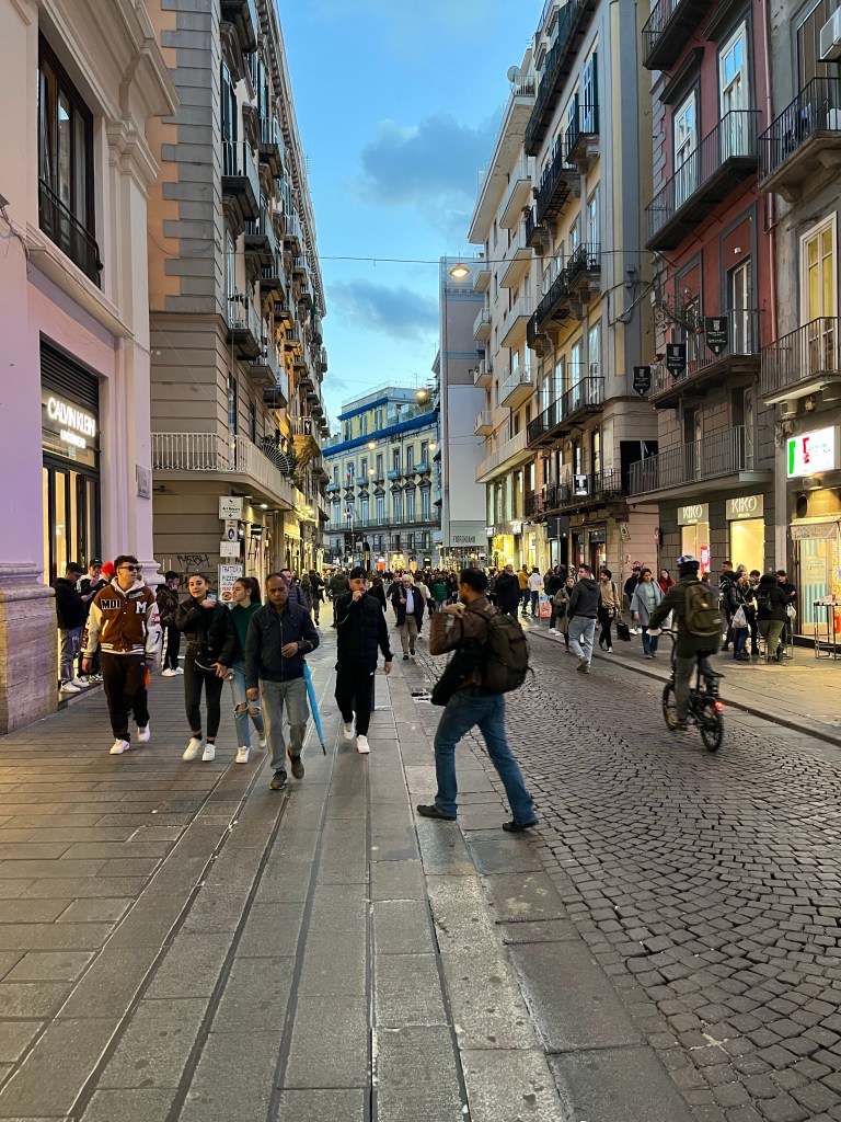 When we arrived in Naples we were both too tired to go out for dinner and still too full from our fabulous lunch. I did have to run to the ATM before we left for Paris tomorrow. Naples is beautiful and we are staying in the heart of the city on Via Toledo.