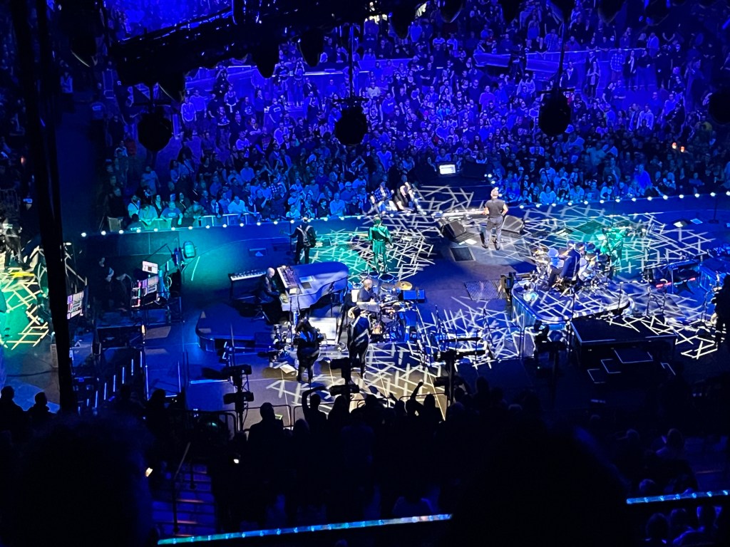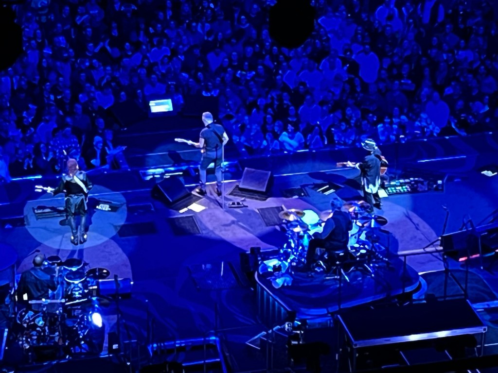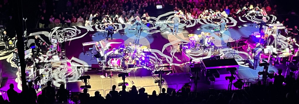 The Moda Center in Portland, Oregon, home of the Trailblazers and a short walk from our hotel, is a great concert venue. We had front upper level seats behind the stage. We were mildly envious of those in the non-mosh pit, but like ski racing, know the time of standing on concrete for 4 hours is long past.